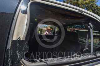 TOLUCA, ESTADO DE MÉXICO, 23SEPTIEMBRE2020.- Juan Izquierdo, Jefe Supremo Otomí del Valle de Toluca sufrió un atentado en su domicilio en San Cristobal Huichochitlán durante la madrugada de este miércoles, al menos 4 detonaciones realizaron de forma directa a su domicilio dañando una camioneta que se encontraba en el lugar y los impactos quedaron en su entrada principal. FOTO: CRISANTA ESPINOSA AGUILAR /CUARTOSCURO.COM