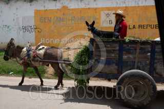 REYES ETLA, OAXACA, 23SEPTIEMBRE2020.- A bordo de una carreta jalada por un burro, un joven y su perro recorren las calles del municipio perteneciente a la región de Valles Centrales. FOTO: PEDRO VALTIERRA/CUARTOSCURO.COM