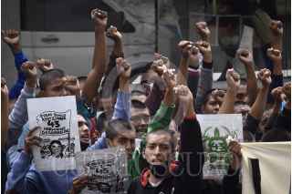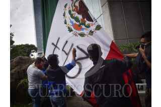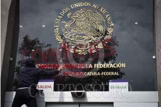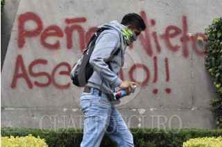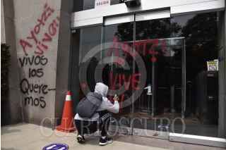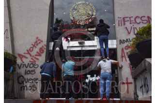 CIUDAD DE MÉXICO, 23SEPTIEMBRE2020.- Grupos de jóvenes encapuchados realizaron pintas en la fachada del del Poder Judicial de la Federación durante la manifestación de simpatizantes y familiares de los 43 estudiantes de Ayotzinapa desaparecidos en la que exigieron justicia y esclarecimiento de los hechos. FOTO: MARIO JASSO /CUARTOSCURO.COM