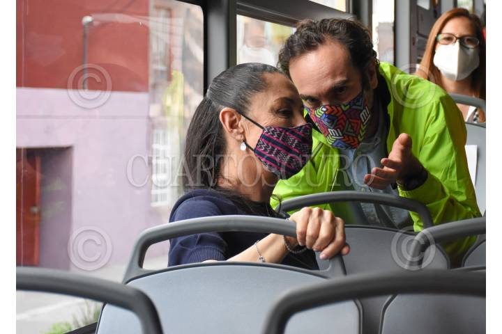 CIUDAD DE MÉXICO, 24SEPTIEMBRE2020.- La jefa de gobierno, Claudia Sheinbaum dio a conocer el primer autobús eléctrico del Metrobús que a partir de mañana correrá por la Línea tres de este servicio la cual va de Tenayuca y Etiopía. Los autobuses articulados tendrán un costo de 750 mil dólares cada uno. FOTO :DANIEL AUGUSTO /CUARTOSCURO.COM