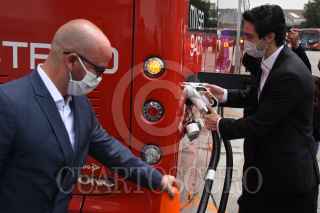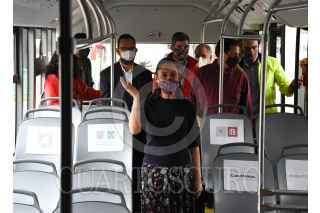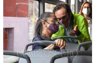 CIUDAD DE MÉXICO, 24SEPTIEMBRE2020.- La jefa de gobierno, Claudia Sheinbaum dio a conocer el primer autobús eléctrico del Metrobús que a partir de mañana correrá por la Línea tres de este servicio la cual va de Tenayuca y Etiopía. Los autobuses articulados tendrán un costo de 750 mil dólares cada uno. FOTO :DANIEL AUGUSTO /CUARTOSCURO.COM