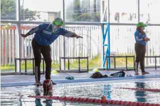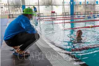 METEPEC, ESTADO DE MÉXICO, 24SEPTIEMBRE2020.- El Multideportivo María del Carmen Peña M. en Metepec abrió sus puertas para retomar deportes como la natación durante el semáforo Naranja en la contingencia por COVID-19 tomando todas las medidas sanitarias necesarias para el ingreso a la alberca, se cuenta com una entrada y salida especial, el cupo es limitado al 30 por ciento de su capacidad, se puede estar 45 minutos en la alberca, no hay servicio de regaderas, se tiene que agendar cita para poder acudir y cada hora son sanitizadas las áreas utilizadas por los nadadores para dejarlas lista para sus uso. FOTO: CRISANTA ESPINOSA AGUILAR /CUARTOSCURO.COM
