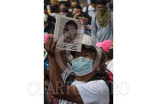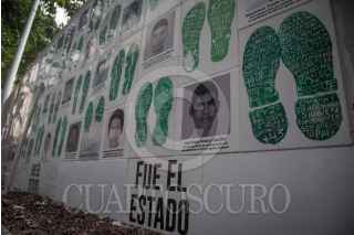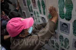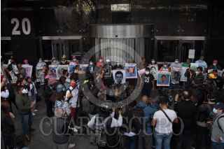 CIUDAD DE MÉXICO, 25SEPTIEMBRE2020.- Padres de los 43 alumnos desaparecidos de Ayotzinapa, y simpatizantes, se manifestaron en las instalaciones de la Fiscalía General de la República para exigir justicia a casi 6 años de cumplirse los hechos suscitados en Iguala. Familiares y colectivos colocaron en un pared de la glorieta de Insrugentes el "Muro de la Memoria" que reuné mosaicos con el rostro de las personas desaparecidas. FOTO: MARIO JASSO /CUARTOSCURO.COM