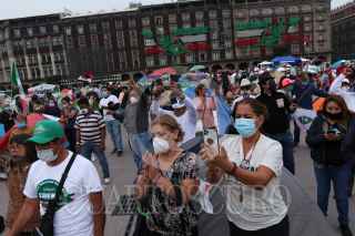 CIUDAD DE MÉXICO, 25SEPTIEMBRE2020.- Por segunda día consecutivo, diversos grupos del Frente Nacional Anti AMLO (FRENAAA) ocuparon la plancha del Zócalo capitalino. Se estima que el día de mañana llegaran más para reforzar el plantón. FOTO: GALO CAÑAS/CUARTOSCURO.COM