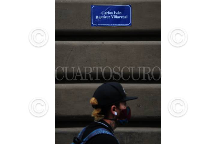 CIUDAD DE MÉXICO, 26SEPTIEMBRE2020.- Las calles del Centro Histórico cambiaron de nombre debido a que un grupo de jóvenes colocó sobre los letreros de las calles los nombres de los 43 normalistas desaparecidos hace 6 años en Iguala, Guerrero. FOTO: DANIEL AUGUSTO/CUARTOCURO.COM