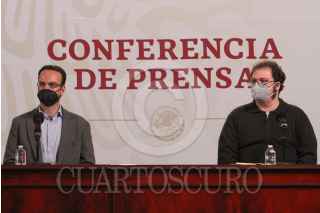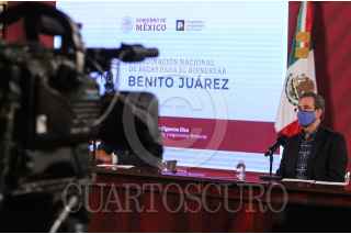 CIUDAD DE MÉXICO, 26SEPTIEMBRE2020.- Esteban Moctezuma, titular de la Secretaría de Educación, Leopoldo Figueroa, representante de las Becas Benito Juárez, durante la conferencia de Bienestar en Palacio Nacional, donde dieron a conocer de qué las becas para el bienestar Benito Juárez llegaron a los 10 millones beneficiarios en todo el territorio nacional. FOTO: ROGELIO MORALES /CUARTOSCURO.COM