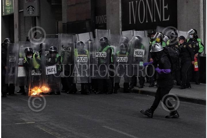 CIUDAD DE MÉXICO, 26SEPTIEMBRE2020.- A seis años de la desaparición de los 43 normalistas de Ayotzinapa, los padres de los jóvenes estudiantes marcharon desde el Ángel de la Independencia hasta la plancha del Zócalo capitalino. El bloque Negro fue encapsulado por elementos de seguridad Capitalinos impidiendo la llegada a la Plancha del Zócalo. FOTO: ANDREA MURCIA /CUARTOSCURO.COM