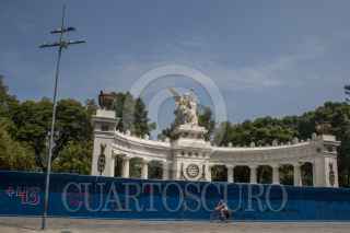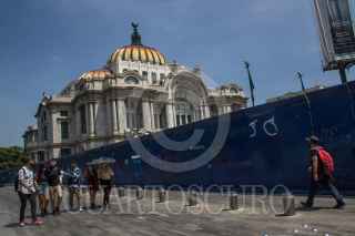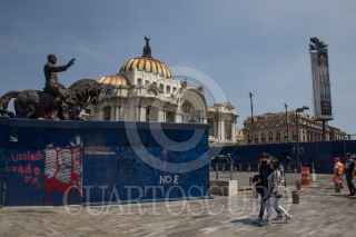 CIUDAD DE MÉXICO, 27SEPTIEMBRE2020.- Monumentos y edificios, como el Hemiciclo a Juárez y el Palacio de Bellas Artes, lucen tapiados como vallas metálicas debido a las marchas de las últimas semanas. La Jefa de Gobierno ha dado a conocer que permanecerán hasta que pase la marcha del 2 de Octubre, esto para proteger estos inmuebles de pintas y daños. FOTO: MOISÉS PABLO/CUARTOSCURO.COM