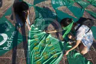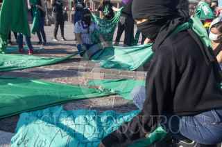 MONTERREY, NUEVO LEÓN, 27SEPTIEMBRE2020.- Mujeres del colectivo “Hablemos de Aborto” y feministas en Nuevo León, organizaron una manifestación en la Explanada de los Héroes, donde expusieron un Mega pañuelo por el derecho a decidir con palabras a favor del aborto libre. FOTO: GABRIELA PÉREZ MONTIEL /CUARTOSCURO.COM