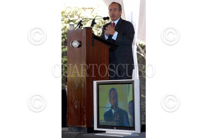 MÉXICO D.F. 16MAYO2006.- Felipe Calderón, candidato a la presidencia por el PAN, durante su reunión con integrantes de la Camara Mexicana de la Industria de la Construcción, como parte de su camapaña. FOTO: Guillermo Perea/CUARTOSCURO.COM