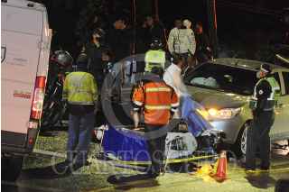 Ciudad de México, 28 septiembre 2020. Muere motociclista al derrapar e impactar contra un auto en el kilómetro 21 de la carretera México Cuernavaca en la colonia San Pedro Mártir en alcaldía de Tlalpan. El exceso de velocidad y la lluvia las causas de este accidente. Foto: Luis Carbayo/cuartoscuro.com
