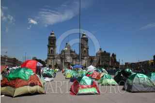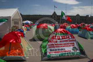 CIUDAD DE MÉXICO, 28SEPTIEMBRE2020.- Continúa el campamento del Frente Nacional Anti-AMLO (FRENA) en el Zócalo, el cual se encuentra encapsulado entre vallas y policías capitalinos, los manifestantes solo ocupan la mitad de la plancha han señalado que no se retirarán hasta que renuncie el Jefe del Ejecutivo, Andrés Manuel López Obrador. FOTO: MOISÉS PABLO/CUARTOSCURO.COM