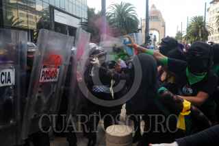 CIUDAD DE MÉXICO, 28SEPTIEMBRE2020.- Elementos de la policía encapsularon a mujeres de diferentes colectivas feministas que protestaron por la desaparición de la joven Karla en avenida Juárez. FOTO: GRACIELA LÓPEZ /CUARTOSCURO.COM