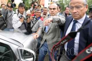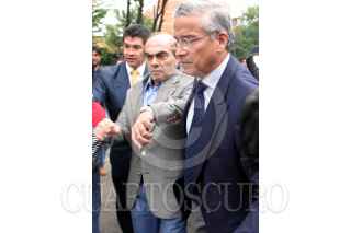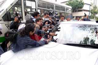 MEXICO, D.F. 16MAYO2006.- El empresario textilero Kamel Nacif, acudió a la fiscalía de delitos en contra de periodistas de la PGR, en donde se le leyo la demanda interpuesta por la periodista Lydia Cacho. En la imagen los reporteros gráficos tratando de obtener la ultima foto del acusado de pederastía abordo de automovil. FOTO: Moisés Pablo/CUARTOSCURO.COM