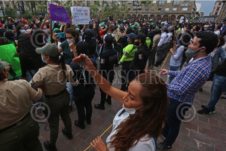 GUADALAJARA, JALISCO, 28SEPTIEMBRE2020.- Esta tarde en el centro de la ciudad se llevo a cabo una marcha por la Despenalización del Aborto Gdl #28s, misma que partió del Monumento a la Madre hasta la Plaza de la Liberación y en donde se suscitaron algunos percances entre un grupo religioso y las feministas, así como con un compañero fotoperiodista de un medio de comunicación local. FOTO: FERNANDO CARRANZA GARCIA / CUARTOSCURO.COM