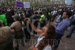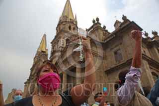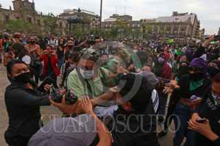 GUADALAJARA, JALISCO, 28SEPTIEMBRE2020.- Esta tarde en el centro de la ciudad se llevo a cabo una marcha por la Despenalización del Aborto Gdl #28s, misma que partió del Monumento a la Madre hasta la Plaza de la Liberación y en donde se suscitaron algunos percances entre un grupo religioso y las feministas, así como con un compañero fotoperiodista de un medio de comunicación local. FOTO: FERNANDO CARRANZA GARCIA / CUARTOSCURO.COM