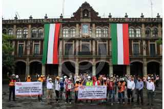 CUERNAVACA, MORELOS,29SEPTIEMBRE2020.- Integrantes de la Cámara Mexicana de la Industria de la Construcción llegaron a la Plaza de Armas de la ciudad, para exigir audiencia con el Gobernador del estado, con el fin de planear una estrategia para mitigar los efectos de la pandemia del Covid-19. Los constructores denuncian que casi 90 empresas han cesado sus actividades por no poder sostenerse en la nueva realidad. FOTO: MARGARITO PÉREZ RETANA /CUARTOSCURO.COM