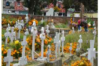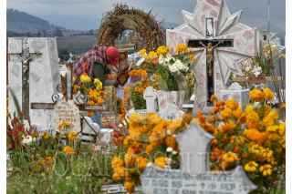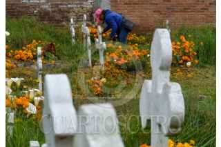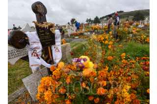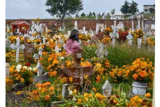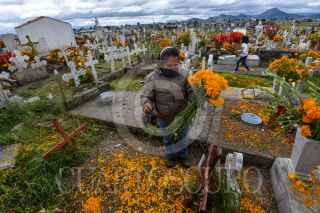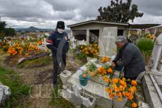 TOLUCA, ESTADO DE MÉXICO, 29SEPTIEMBRE2020.- Los panteones de la zona indígena de Toluca fueron abiertos para que la población pudiera acudir a arreglar las tumbas de sus muertos con flor se cempasúchil como parte de los festejos a San Miguel Arcángel y previo a la celebración del Día de Muertos, este año la festividad sufrió cambios ya que no se deja ingresar a tantas personas al mismo tiempo al lugar y muchos de los muertos son de recientes fechas, algunos por COVID-19; el color naranja predomina en el panteón por los pétalos y flores que adornan cada tumba, en su mayoría son personas que van solas a visitar los sepulcros, el resto de la familia permanece en casa por la contingencia de Coronavirus. FOTO: CRISANTA ESPINOSA AGUILAR /CUARTOSCURO.COM