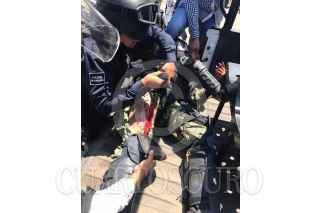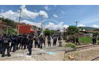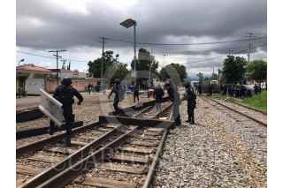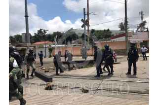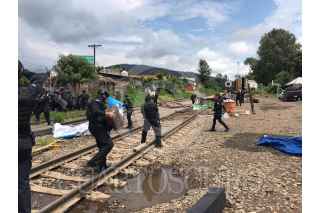 URUAPAN, MICHOACÁN, 30SEPTIEMBRE2020.- En la comunidad de Caltzontzin elementos de la Guardia Nacional y Policía Estatal encabezaron un desalojo a las vías del tren, las cuales estaban siendo bloqueadas por maestros de la CNTE. En el lugar se desató un enfrentamiento entre profesores y fuerzas del orden, con un saldo de 14 heridos; 4 elementos de la Guardia Nacional y 10 policías, además de la detención de siete manifestantes. FOTO: CUARTOSCURO.COM