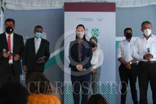 CIUDAD DE MÉXICO, 01OCTUBRE2020.- Claudia Sheinbaum, jefa de gobierno de la Ciudad de México, en compañía del alcalde de Azcapotzalco, Vidal Llerenas, y Rafael Bernardo Carmona, director de Sacmex, inauguraron las Plantas Potabilizadoras "Trabajadores de hierro" y "Ferrerías”, en la alcaldía de Azcapotzalco. Lo que beneficiará a amenos cien mil personas para acceder al vital líquido. FOTO: GALO CAÑAS/CUARTOSCURO.COKM