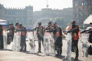 CIUDAD DE MÉXICO. 01OCTUBRE2020.- El Frente Nacional Anti AMLO, que se encuentra en plantón en la plancha del Zócalo de la Ciudad, se encuentra resguardada por policías capitalinos. FOTO; VICTORIA VALTIERRA/CUARTOSCURO.COM