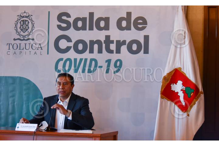 TOLUCA, ESTADO DE MÉXICO, 01OCTUBRE2020.- Juan Rodolfo Sánchez Gómez, presidente municipal de Toluca en conferencia de prensa informó que hasta el momento se han registrado 6 mil 663 casos positivos y 825 defunciones por COVID-19, colocando a la capital mexiquense como el tercer lugar estatal, y en las últimas semanas se ha registrado una tendencia a la baja de fallecimientos gracias a las diversas medidas sanitarias que se han tomado entre ella el uso obligatorio del cubrebocas. FOTO: CRISANTA ESPINOSA AGUILAR /CUARTOSCURO.COM
