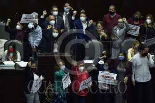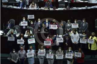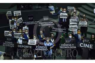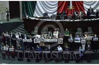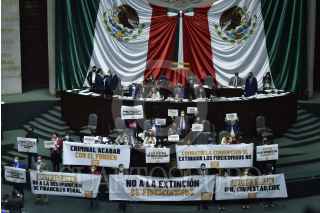 CIUDAD DE MÉXICO, 01OCTUBRE2020.- Protestas durante los posicionamientos de la discusión de la aprobación del dictamen que busca la eliminación de 109 fideicomisos, ésto mientras se desarrolla la sesión ordinaria de la Cámara de Diputados. FOTO: MARIO JASSO /CUARTOSCURO.COM
