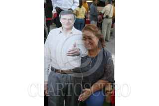 MÉXICO D.F. 16MAYO2006.- La señora Josefina Suárez, simpatizante perredísta abraza un cartón con la figura del candidato del PRD al gobierno del Distrito Federal, Marcelo Ebrard, durante el acto de campaña de dicho aspirante al GDF, en la colonia Peñon de los Baños. FOTO: Diego Gallegos/CUARTOSCURO.COM