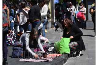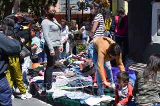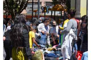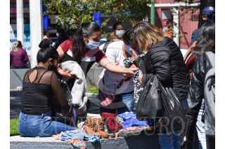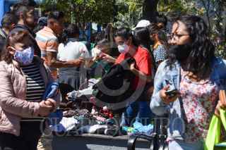 TOLUCA, ESTADO DE MÉXICO, 02OCTUBRE2020.- A pesar del llamado de las autoridades locales a la población de continuar cuidándose y de continuar en Semáforo Naranja por el COVID-19, evitar grandes concentraciones y usar cubrebocas, el Jardín Simón Bolívar en Toluca todos los martes y viernes se instalan personas a vender ropa de uso o nueva, fragancias, zapatos o hacer intercambios, llevando también niños y en ocasiones se registran conatos de bronca entre las vendedoras. FOTO: CRISANTA ESPINOSA AGUILAR /CUARTOSCURO.COM