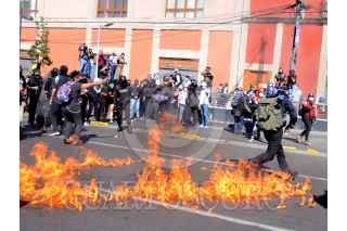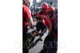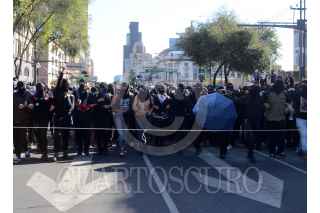 CIUDAD DE MÉXICO, 02OCTUBRE2020.- Enfrentamiento de grupo de anarquistas con la policía en donde arrojaron bombas molotov, piedras, y petardos, después de haber sido cercados sobre eje central mientras trataban de ingresar al zócalo como parte de una marcha en conmemoración del 52 aniversario de la matanza de Tlatelolco. FOTO: ARMANDO MONROY/CUARTOSCURO.COM