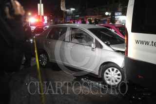 Ciudad de México, 03 octubre 2020. Un policía fue ejecutado con varios impactos de arma de fuego, a bordo de un auto Aveo que conducía en calle Benito Juárez en la colonia Solidaridad, el hombre siguió su marcha impactándose contra una camioneta Urban y un Taxi metros delante de donde le dispararon. Foto: Luis Carbayo/cuartoscuro.com