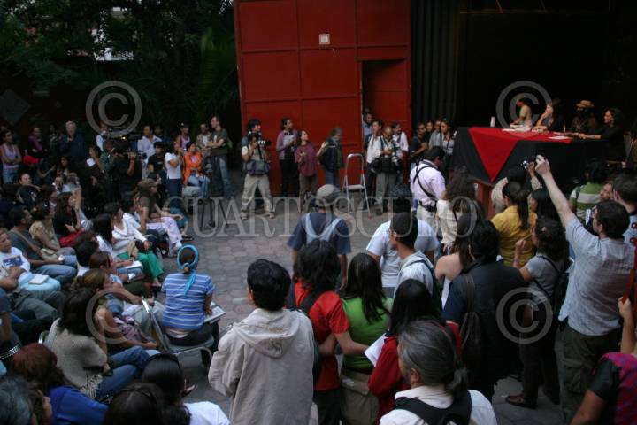 MEXICO, D.F. 16MAYO2006.- La actriz Julieta Egurrola durante su participación en la reunión en la casa de cultura la Conchita, ahí se discutio la manera de apoyar a las mujeres victimas de abusos sexuales durante la incursión de la policia en Atenco. FOTO: Nelly Salas/CUARTOSCURO.COM