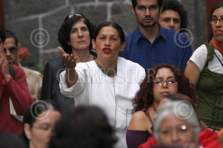 MEXICO, D.F. 16MAYO2006.- La actriz Julieta Egurrola durante su participación en la reunión en la casa de cultura la Conchita, ahí se discutio la manera de apoyar a las mujeres victimas de abusos sexuales durante la incursión de la policia en Atenco. FOTO: Nelly Salas/CUARTOSCURO.COM