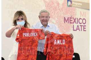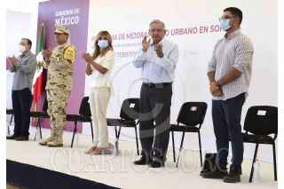 HERMOSILLO, SONORA, 04OCTUBRE2020.- Andrés Manuel López Obrador, Presidente de México encabezó el "Programa de Mejoramiento Urbano en Sonora", en el Estadio "Héctor Espino". Lo acompañaron al mandatario: Luis Cresencio Sandoval González, secretario de la Defensa Nacional; Alfonso Durazo Montaño, secretario de Seguridad y Protección Ciudadana; Claudia Pavlovich Arellano, gobernadora de Sonora y Román Meyer Falcón, secretario de Desarrollo Agrario Territorial y Urbano. FOTO: PRESIDENCIA/CUARTOSCURO.COM