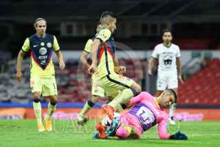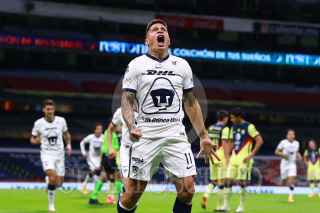 CIUDAD DE MÉXICO, 04OCTUBRE2020.- La noche de ayer se vivió un intenso partido entre las Águilas del América contra los Pumas de la UNAM, en el Estadio Azteca, el cual resultó empatado 2-2. Los goles de los universitarios fueron de Juan Pablo Vigón y Juan Iturbe, mientras que por las Águilas anotaron Nicolás Benedetti y Federico Viñas. FOTO: CLUB PUMAS/CUARTOSCURO.COM