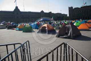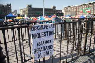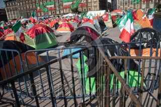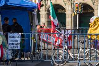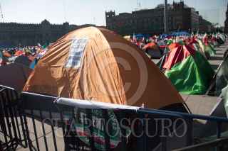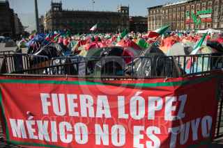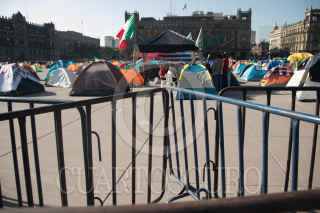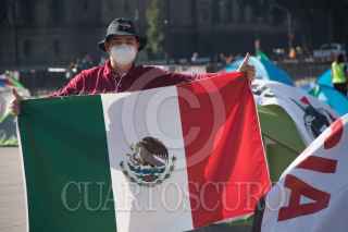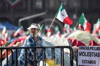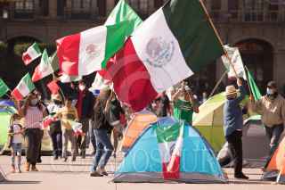 CIUDAD DE MÉXICO. 05OCTUBRE2020.- Continúa el plantón del Frente Nacional Anti AMLO, en la plancha del Zócalo capitalino. Vallas metálicas protegen la manifestación de personas Pro Obradoristas quienes acuden a gritar consignas a favor del Presidente. FOTO: VICTORIA VALTIERRA/CUARTOSCURO.COM