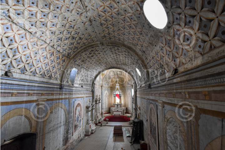 MALINALCO, ESTADO DE MÉXICO, 06OCTUBRE2020.- Uno de los atractivos turísticos del Pueblo Mágico de Malinalco es el Ex Convento Agustino y la Parroquia del Divino Salvador, edificios que sufrieron graves daños a raíz del sismo del 2017, como parte de la restauración de ambos inmuebles se apuntalaron algunas partes del templo que presenta falla estructural y una fractura en la bóveda a la mitad, siendo el edificio más dañado y más retrasado en su restauración; el claustro y el convento tienen un avance en su restauración de un 80 por ciento y algunas partes ya están habilitadas al público, sobre todo para poder oficiar misas que se llevaban a cabo en una huerta al costado del convento; en la entrada de la iglesia fue colocada una malla para evitar la entrada de turistas sobre todo por protección, y en la parte alta instalaron lonas para proteger partes dañadas pero las lluvias y el viento las ha movido lo que ha provocado algunas filtraciones y el reblandecimiento de algunas zonas, para la restauración de la iglesia se necesitan 25 millones de pesos. FOTO: CRISANTA ESPINOSA AGUILAR /CUARTOSCURO.COM