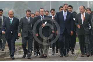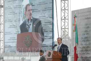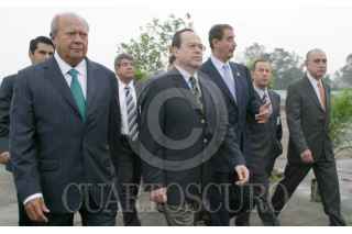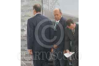MEXICO, D.F. 17MAYO2006.- Carlos Romero de Champs, lider de los petroleros, Carlos De Regules y el presidente Vicente Fox durante un recorrido por la Ex-Refineria 18 de Marzo, que serà convertida en parque ecologico. FOTO: Nelly Salas/CUARTOSCURO.COM