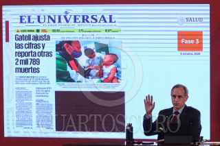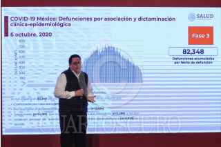CIUDAD DE MÉXICO, 06OCTUBRE2020.- Hugo López-Gatell Ramírez, Subsecretario de Prevención y Promoción de la Salud, José Luis Alomía Zegarra, director de Epidemiología, durante la conferencia vespertina sobre el COVID-19, en donde expusieron el tema sobre el registro en un día de 2 mil 789 muertes que según medios era derivado de una nueva metodología en el conteo. FOTO: ROGELIO MORALES /CUARTOSCURO.COM