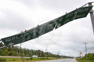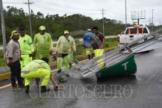 PUERTO MORELOS, QUINTANA ROO, 07OCTUBRE2020.- Derribando alumbrado y letretros, comienza a hacerse sentir el huracán Delta, el cual tocó la tierra del sureste mexicano esta madrugada. FOTO: ELIZABETH RUIZ/CUARTOSCURO.COM
