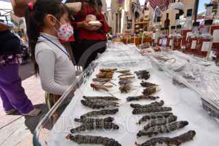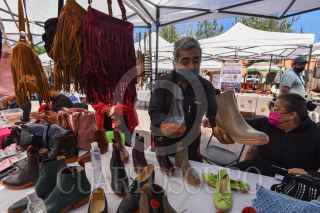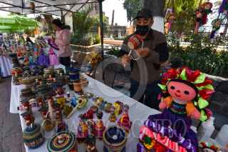 SAN MATEO ATENCO, ESTADO DE MÉXICO, 07OCTUBRE2020.- Artesanos de diversos municipios del Estado de Mexico participan en la Caravana Artesanal Mexiquense que se encuentra recorriendo algunos municipios acercando el colorido arte de distintas regiones como parte de la reactivación económica después de haberse suspendido todas las actividades por la contingencia por COVID-19, ropa de lana, juguetes de madera, muñecas de trapo, cartonería, mezcal, zapatos y prueba de insectos son algunas de las cosas que se pueden encontrar. FOTO: CRISANTA ESPINOSA AGUILAR /CUARTOSCURO.COM