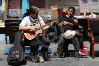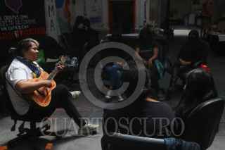 CIUDAD DE MÉXICO, 07OCTUBRE2020.- La cantante Vivir Quintana, originaria de Coahuila, acudió a tocar unas canciones en apoyo a Erika, mamá de una menor víctima de abuso sexual, y a las integrantes del Bloque Negro que permanecen en "Okupa, Casa de Refugio", antes conocida como la Comisión Nacional de los Derechos Humanos. FOTO: GRACIELA LÓPEZ /CUARTOSCURO.COM