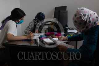 CIUDAD DE MÉXICO, 07OCTUBRE2020.- Judith, menor de edad quien sufrió de abuso sexual en 2017, e hijas de una integrante del Bloque Negro realizan actividades escolares y recreativas en la "Okupa Casa de Refugio", instalaciones de la Comisión Nacional de los Derecho Humanos tomadas desde hace un mes por Erika Martínez, madre de Judith e integrantes feministas del Bloque Negro. FOTO: GRACIELA LÓPEZ /CUARTOSCURO.COM