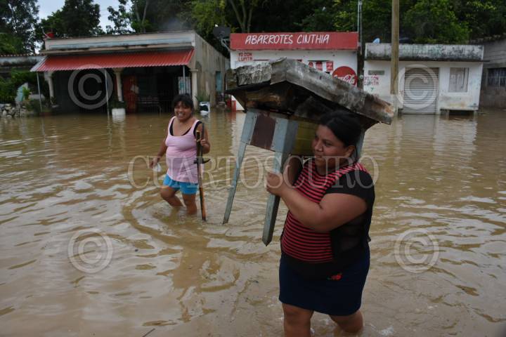 CHEMBLAS, CAMPECHE, 07OCTUBRE2020.- El poblado de Chemblas se encuentra inundado debido al escurrimiento de las aguas debido a las fuertes lluvias que se han registrado por los fenómenos meteorológicos Gamma y las lluvias que ocasionó el huracán Delta. FOTO: MICHAEL BALAM/CUARTOSCURO.COM