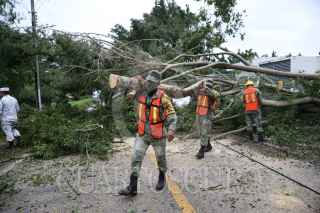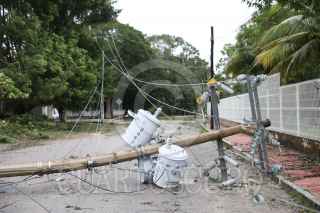 TIZIMÍN, YUCATÁN, 07OCTUBRE2020.- Árboles caídos y poste de luz fue el saldo en esta localidad por el paso del huracán Delta, el cual causó daños menores en Quintana Roo y Yucatán. Autoridades de este poblado colocaron albergues para las personas que así lo quieran se trasladarán a ellos en lo que pasaba el peligro. FOTO: FRANCISCO BALDERAS/CUARTOSCURO.COM