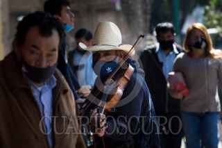 CIUDAD DE MÉXICO, 08OCTUBRE2020.- Un violinista ofrece sus notas musicales a cambio de unas monedas afuera del metro San Cosme. FOTO: MOISÉS PABLO/CUARTOSCURO.COM