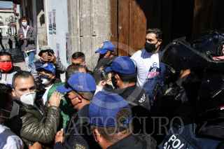 CIUDAD DE MÉXICO, 08OCTUBRE2020.- Trabajadores de a la alcaldía Coyoacán bloquearon por al rededor de una hora y media la Avenida Miguel Ángel de Quevedo a la altura del Parque San Andrés para después marchar de ese punto a la alcaldía Coyoacán, los inconformes exigían la re contratación de cerca de 50 personas que fueron despedidas de manera injustificada por autoridades de la alcaldía, así mismo la destitución inmediata de Juan Silva, jefe de Unidad Departamental de Vía Pública. FOTO: ROGELIO MORALES /CUARTOSCURO.COM