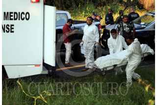 TEPOZTLÁN, MORELOS,08OCTUBRE2020.- Personal del Servicio Médico Forense levantan el cadáver de un hombre envuelto en una cobija dejado junto a otro en el kilómetro uno de la autopista La Pera-Cuautla. El reporte de la localización se recibió pasadas las 16:00 horas. Al sitio arribaron policías de Morelos que resguardaron el sitio del hallazgo, además peritos e investigadores de la Fiscalía General del Estado, quienes recolectaron evidencia para iniciar la averiguación. Este paraje es usado como tiradero de cadáveres, ya que se contabilizan más de una decena en un par de años. FOTO: MARGARITO PÉREZ RETANA /CUARTOSCURO.COM
