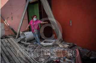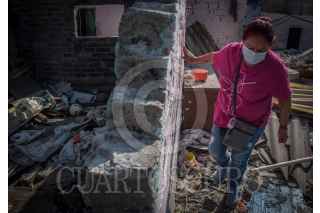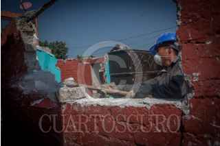 CIUDAD DE MÉXICO, 09OCTUBRE2020.- Continúan los trabajos de demolición y remoción de escombro de la llamada "Ciudad Perdida de Tacubaya", en donde se prevé la construcción de 185 viviendas de 51 metros cuadrados en 16 edificios en un área total de 5 mil 830 metros cuadrados, que serán entregados con escrituras a las mismas familias que habitaban el lugar de forma gratuita por parte del Instituto de Vivienda (INVI). Norma Laura Lizardi, Belinda y Pedro López, ingresaron a la zona de obras para despedirse de lo que fuera su hogar. FOTO: MARIO JASSO/CUARTOSCURO.COM