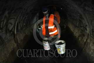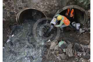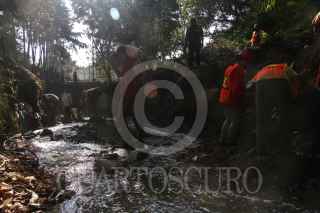 CIUDAD DE MÉXICO, 09OCTUBRE2020.- Trabajadores de la alcaldía Magdalena Contreras continúan los trabajos de limpieza en barrancas de la derivación del Río Magdalena, esto con el objetivo de dar mantenimiento y eliminar la basura de los drenajes de la alcaldía, esto para evitar inundaciones y mejorar la higiene de las casas aledañas a las barrancas y río. FOTO: ROGELIO MORALES /CUARTOSCURO.COM